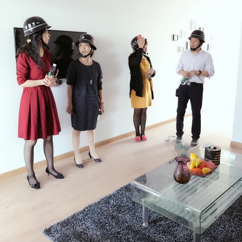 样板房门一开打,优越的房间环境就让李晶静副主任赞叹不已,宽敞明亮的空间、南北通透的格局保证了房间空气的清新、原木色的家具搭配着细小精致的饰品布置,简约而不简单,淡雅而又温馨,李副主任评价说:“这房间今后肯定会一房难求的!”