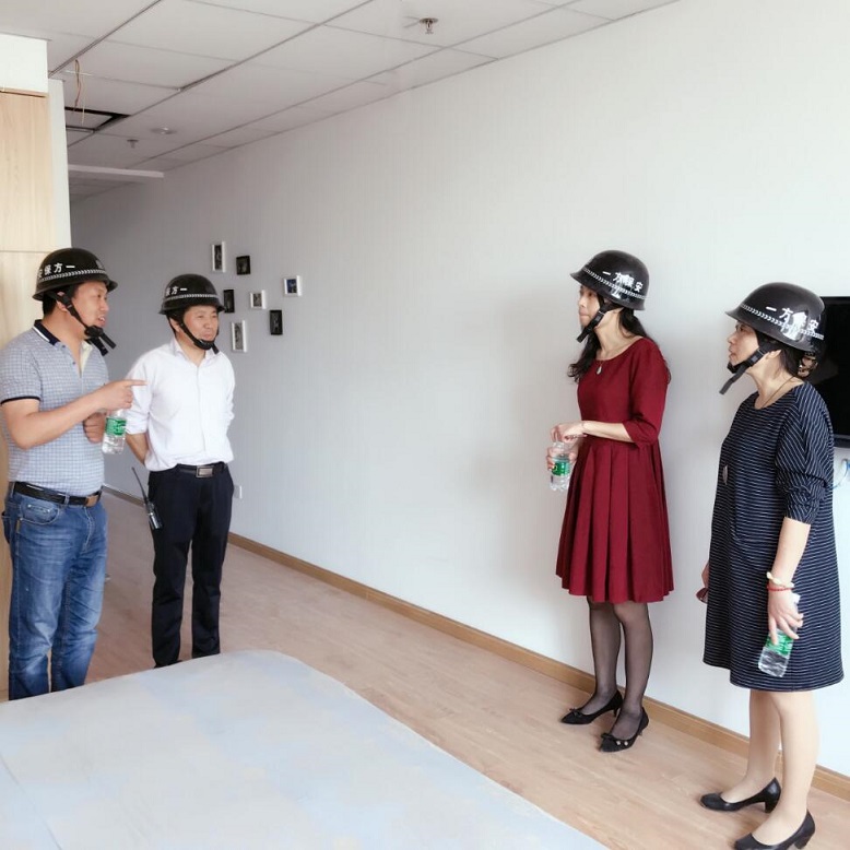 随后,领导们先后参观了康复中心、医护办公室、多人间房型以及药剂科、检验科、放射科等诊疗科室情况,拾级而上,来到位于颐康楼6楼的样板房。