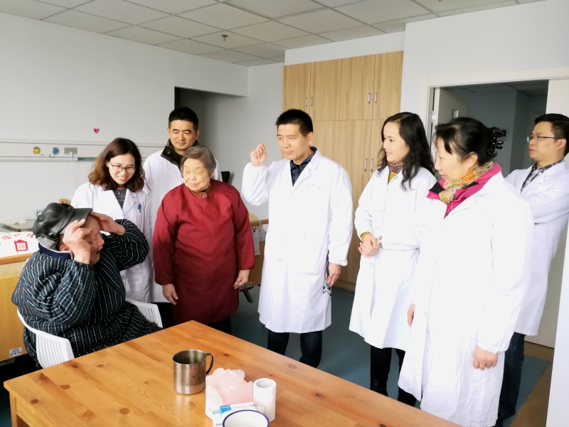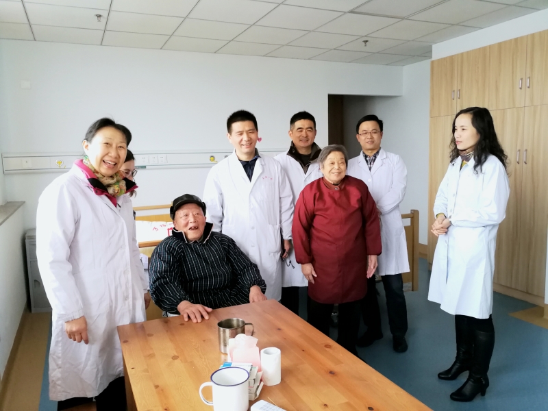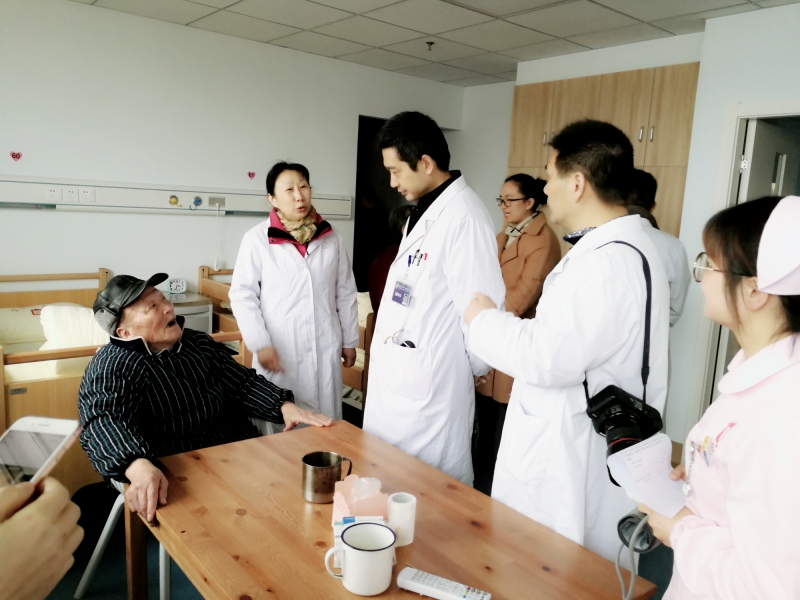 在参观老人入住房间的过程中,民进南通市第一人民医院支部一行针对入住我院不同病症的老人进行了详细的询问、检查,并给出了专业的诊断意见,受到了老人们的热烈欢迎。