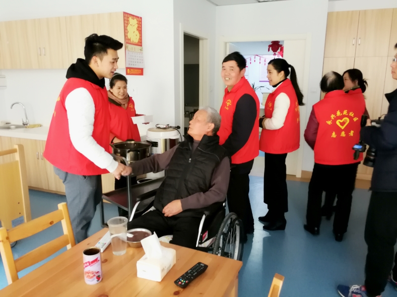 之后,志愿者们还去看望了不方便走到活动现场的老人们,将腊八粥一个个送到他们手中,老人们拉着志愿者们的手,依依不舍,还连声道谢。