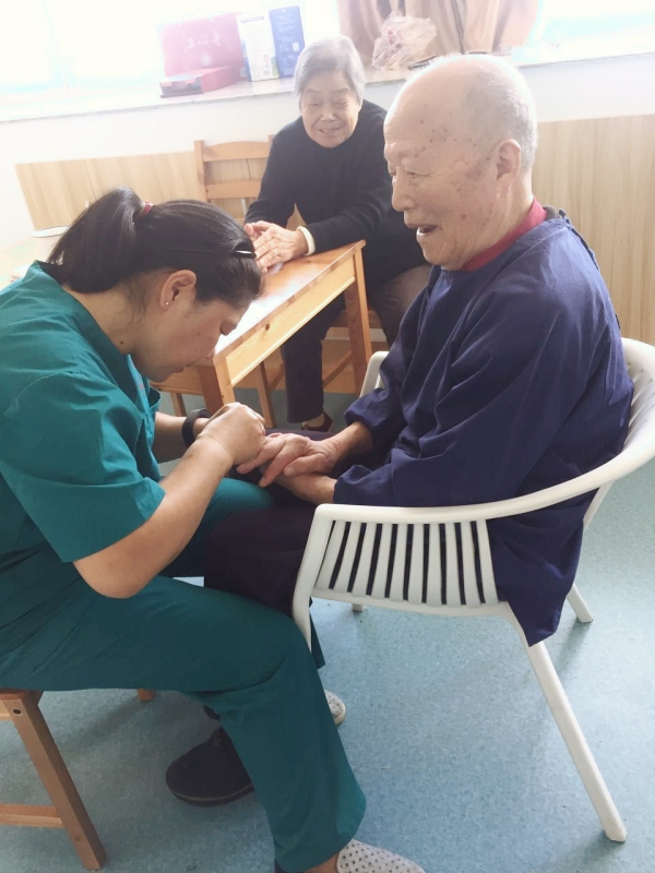 护理员对入住老人从健康教育与维护、心理疏导、户外活动、物质代管、购物助引、口腔护理、沐浴更衣、修剪指甲、端水喂饭、个人卫生、房间打扫、如厕、用药提醒二便护理等;配置必要的康复理疗设备,提高入住老人生活质量。护理员提供24小时日常生活照料规范化流程,每天一共要进行22个护理流程,平均每35分钟就要为患者进行一项服务,全方位的生活照料保证患者享受洁净舒适的晚年生活..